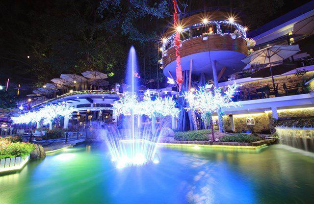 Buổi tối, quán đẹp tựa một nàng công chúa với những đốm sáng lấp lánh từ những ánh đèn leo trên những hàng cây hắt hiu ánh vàng xuống những tán dù che nắng và khoảng không gian dành cho khách ngồi.