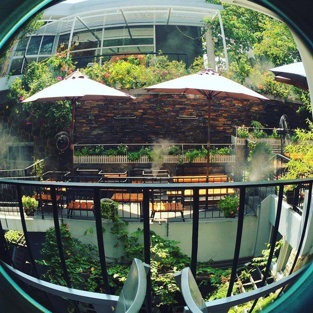 Không gian ngoài trời thoáng đãng, đúng như ý tưởng thiết kế chính là hòa hợp thiên nhiên. Quán đa dạng về không gian cho thực khách nhiều sự lựa chọn.