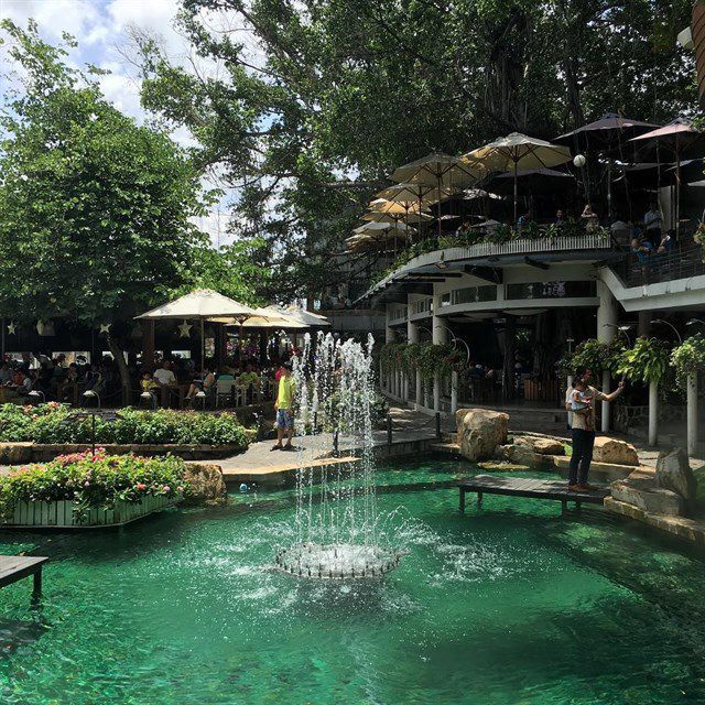 Quán tọa lạc trong một không gian tươi mát nhiều cây xanh và có cả hồ nước. Thiết kế quán cà phê phù hợp với nhu cầu tìm một không gian xanh để tránh nóng của người dân Sài Gòn.