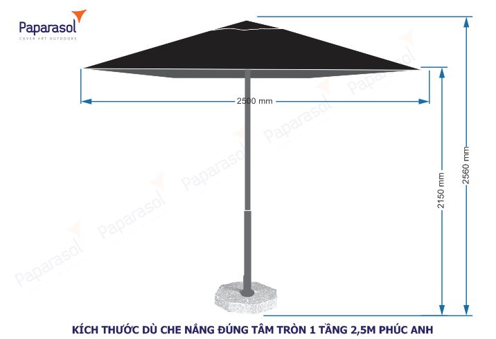 Dù che nắng đúng tâm vuông 1 tầng Phúc Anh (2,5m)