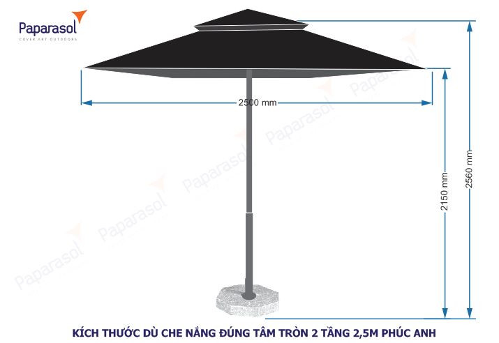 Dù che nắng đúng tâm vuông 2 tầng Phúc Anh (2,5m)