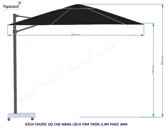 Dù che nắng lệch tâm 1 tầng Phúc Anh (2,9m) với thiết kế hiện đại, chất lượng linh kiện cao.