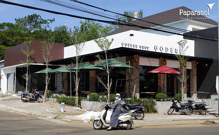 – Hơn thế, một quán cafe có dù che nắng với màu sắc và in logo quán sẽ tạo được phong cách đặc trưng, giúp nhấn mạnh thương hiệu quán đến khách hàng.