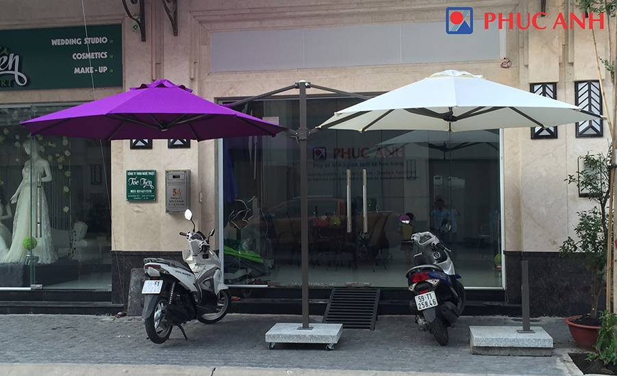 Dù đôi lệch tâm tròn của Phúc Anh là một lựa chọn hoàn hảo. Với một thân cùng 2 tán dù vươn mạnh mẽ sang 2 bên.