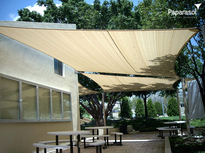 Mái che cánh buồm vuông đáp ứng tối nhu cấp sử dụng mái che ngoài trời cao cấp hiện nay